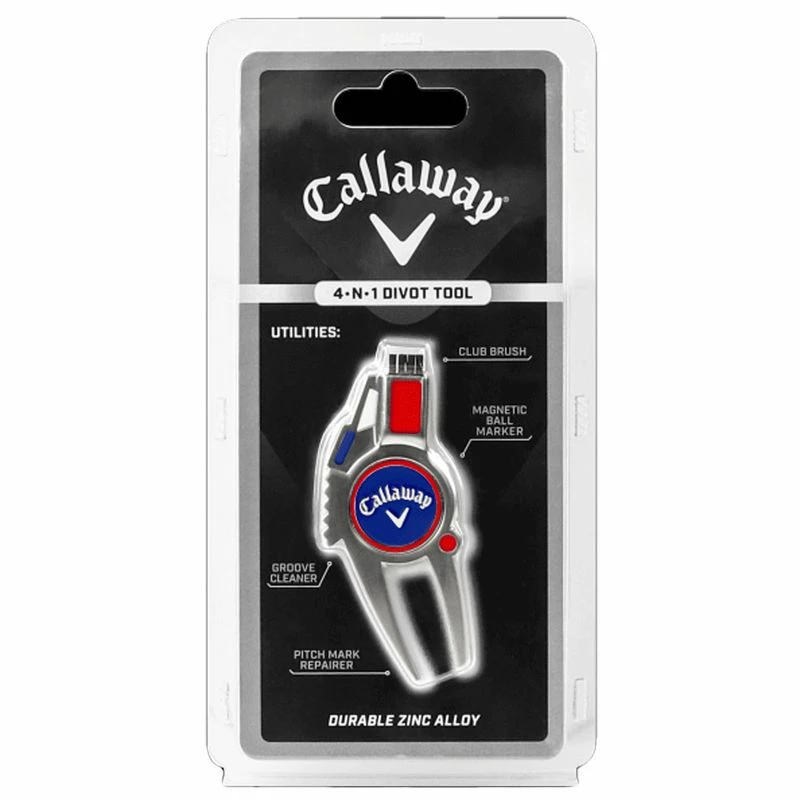 Take proper care of your favorite course while getting some additional cleaning benefits with the Callaway® 4-in-1 Divot Repair Tool. This tool includes a magnetic ball marker, metal groove cleaner, and nylon bristle brush for general use on the course.Shop Callaway and more at Worldwide Golf Shops.
