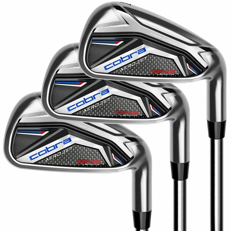 The Aerojet ONE Length Irons are designed at a 7-iron length through the set for enhanced consistency and accuracy from club to club. Shop Cobra and more at Worldwide Golf Shops