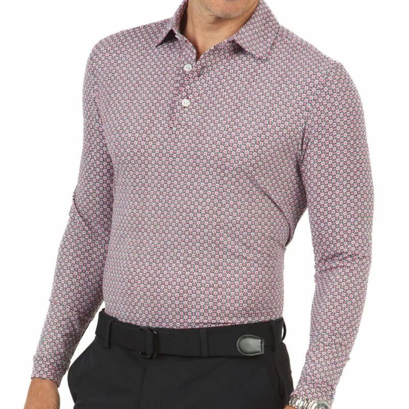IBKUL Men's Geo Print Long Sleeve Polo