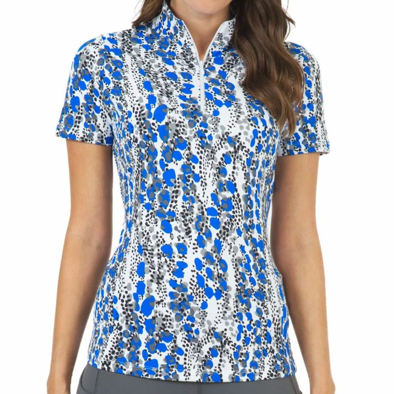 IBKUL Women's Kamila Print Short Sleeve Mock Neck Top