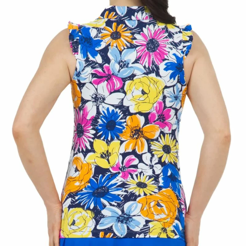IBKUL Women's Medeline Print Ruffle Sleeveless Polo