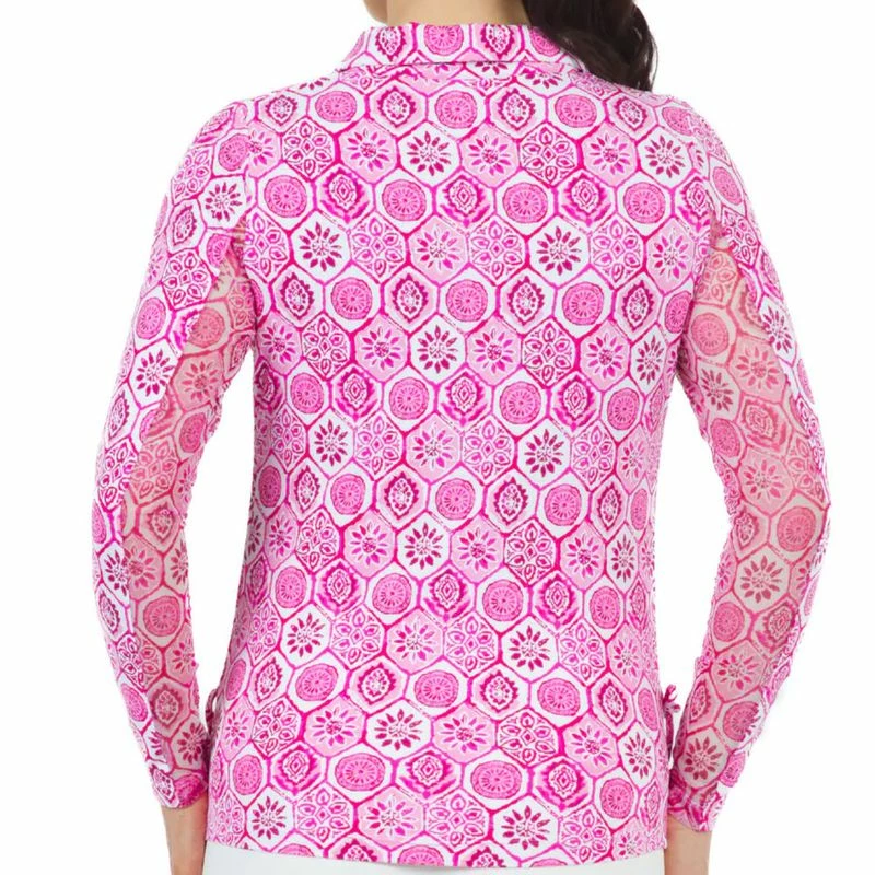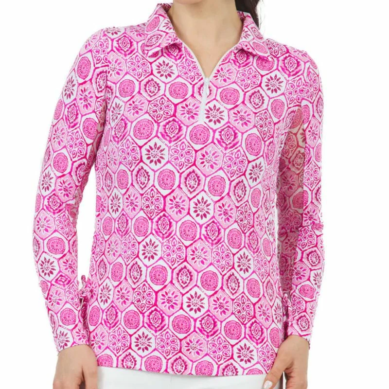 IBKUL Women's Terra Print Long Sleeve 1/4 Zip Polo