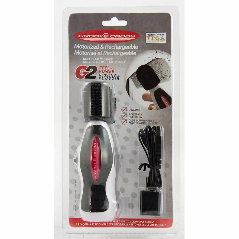 the NEW, innovative way for golfers to clean their golf clubs. It is hand-held, has a 1,120 RPM motor, a 1400 MAH rechargeable lithium-ion battery and custom, non-abrasive nylon bristles. It can be used before, during and after a round of golf or practice session. The Groove Caddy is a revolutionary product and over 10,000 customers agree it is "the easiest and fastest way to clean golf clubs"! By digging and cleaning deep into the golf club grooves, the Groove Caddy will maximize golf club performance and maintenance. The Groove Caddy is engineered to polish the grooves of the golf club more effectively and quickly than a manual brush or towel – no more manual scrubbing. The Groove Caddy also makes the perfect gift for the golfer! Groove Caddy was awarded the 'Best New Product' at the Annual PGA Merchandise Show held in Orlando, Florida. It is the largest, most prestigious Golf Show in the world.