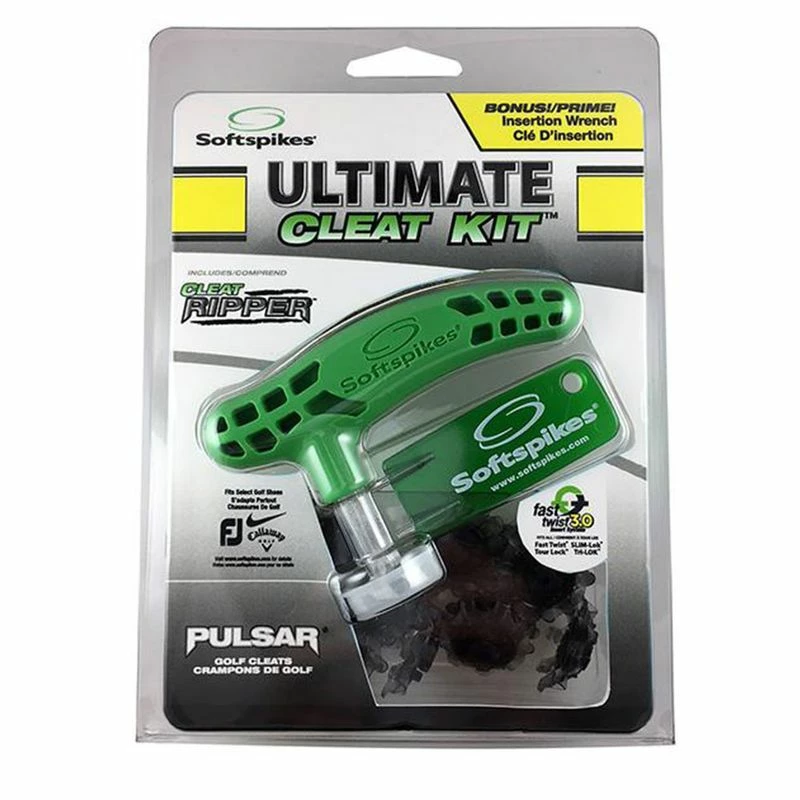 Revive your golf shoes this season with the Softspikes Ultimate Cleat Kit. Featuring a Softspikes Ripper Wrench, a two-prong insertion wrench and a full set of Pulsar Cleats, you’ll have complete traction on all terrains.
