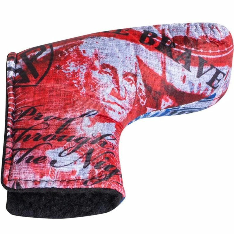 If there’s one place you can be a little flashy, it’s on your <span id="ctl00_ctl00_DefaultContent_labelEditMasterViewName">Covert Blade Putter Headcover</span>. Typically reserved for the interior lining of a Subtle Patriot bag, the custom collage print of iconic American images comes to life on the outside of this sheath.