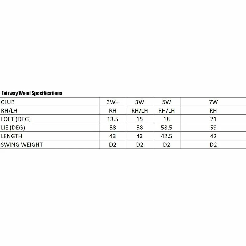 | Club Number/Loft | 3 Wood, 3+ Wood, 5 Wood, 7 Wood |